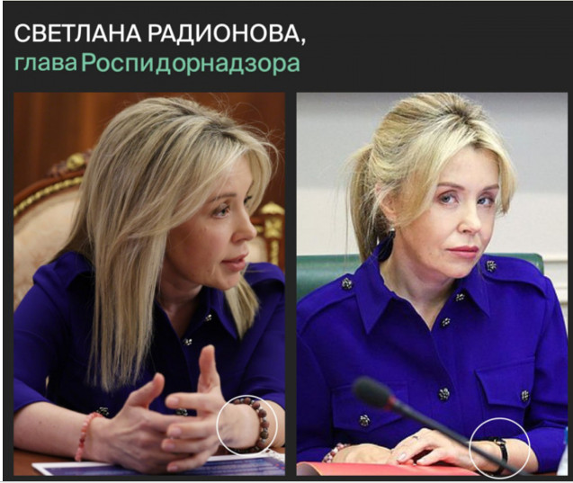 В день когда выходит очередная "консерва" с Путиным, чиновники, участвовавшие в записи, появляются и на других мероприятиях – публично и в реальном времени. Судя по всему, чтобы скрыть подмену, они получают инструкции одеваться точно так же, как на "консервах". Но идеально попасть в образ не всегда получается – чиновников выдают мелочи. (Всякие подробности.)