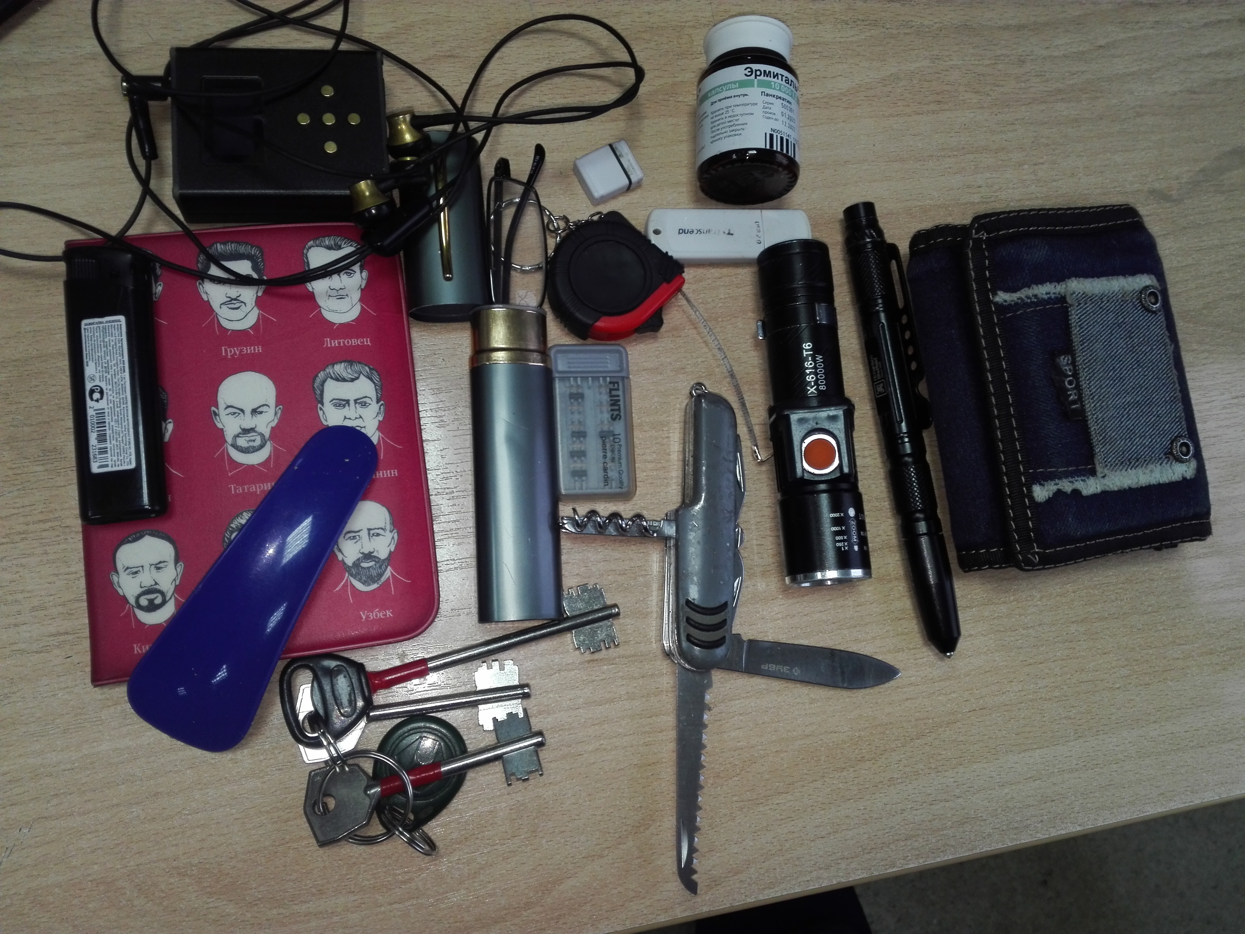Мы там в комментариях уже обменялись мнениями о том, что в данном списке очевидно не хватает запаса туалетной бумаги и протеиновых батончиков, а я тут задумался над тем, что в действительности у меня всегда с собой, когда я выхожу из дома?