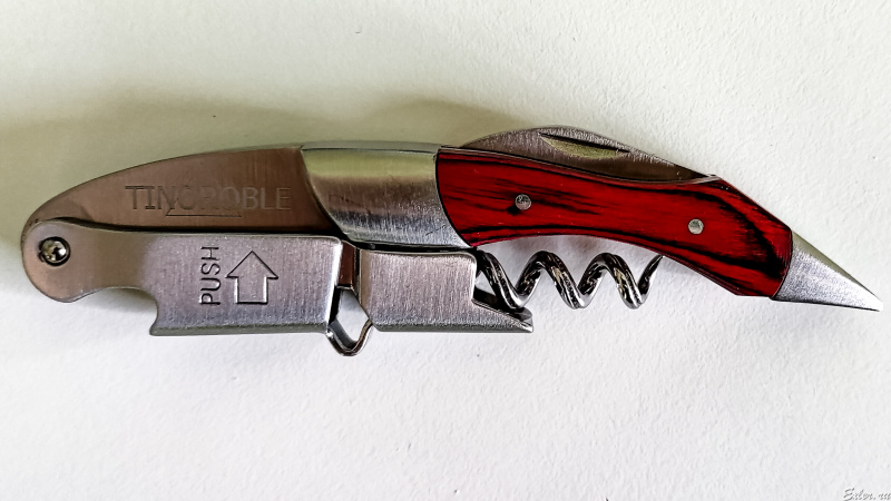 Причем если по поводу ножей я помалкиваю и слушаю старших товарищей, то вот по поводу пробочника я готов зарубиться с кем угодно: для меня, как для профессионального чепьювина, пробочник - основной рабочий инструмент. Сейчас он у меня вот такой.