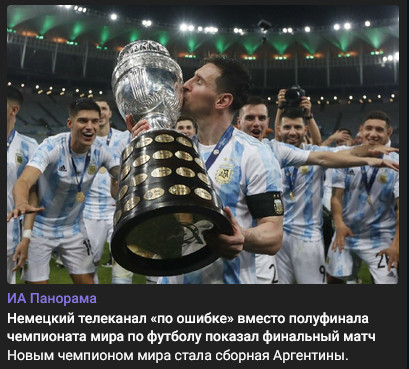 К счастью, я этоно не видел и даже голы смотреть не собираюсь. Как я мальчишкой безумно болел за Аргентину Марадонны в 1986, так же теперь они мне "симпатичны", только со знаком минус. Все до единого. Особенно главная балерина. Мои сочувствия болельщикам сборной Франции. Кубок мира 2026 обязательно будет ваш.