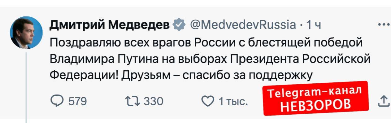 P.S. Если узурпатор власти не захочет заканчивать сво и реагировать хоть как то, тогда новая власть объявит о необходимости переговоров с ними и Украиной, а в виде независимого переговорщика предложат мохнатую залупу венедиктова. Он ведь знаком с песковым, а песков с путиным, вот они все как старые товарищи всё мирно и обсудят и решат судьбы нового добрососедского союза братских государств - только так кровопролитие и закончится, причём без прибегания к тяжёлой артиллерии вроде повсеместных всполохов батарейных фонариков.