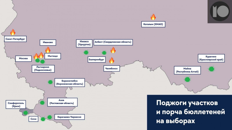 А попытки поджогов избирательных участков, которые самим участкам сильно навредить не могут, зато поджигателю тоже светит тюрьма,