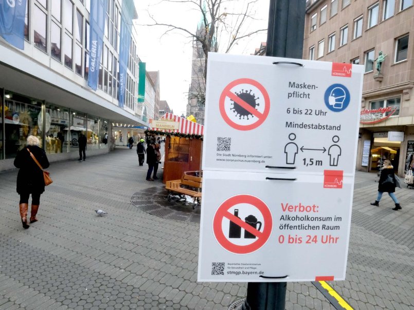 В Нюрнберге превышена граница в 300 новых случаев в день на 100 тыс. населения, поэтому ввели с 1-го декабря до ориентировочно 20-го декабря более жёсткие меры, особенно на центральных улицах. С чего они до алкоголя докопались не совсем понятно.