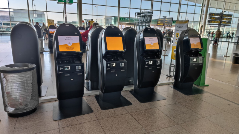 В ширике тоже есть автоматические стойки для "скинуть багаж", всегда там пусто, быстро можно пройти.