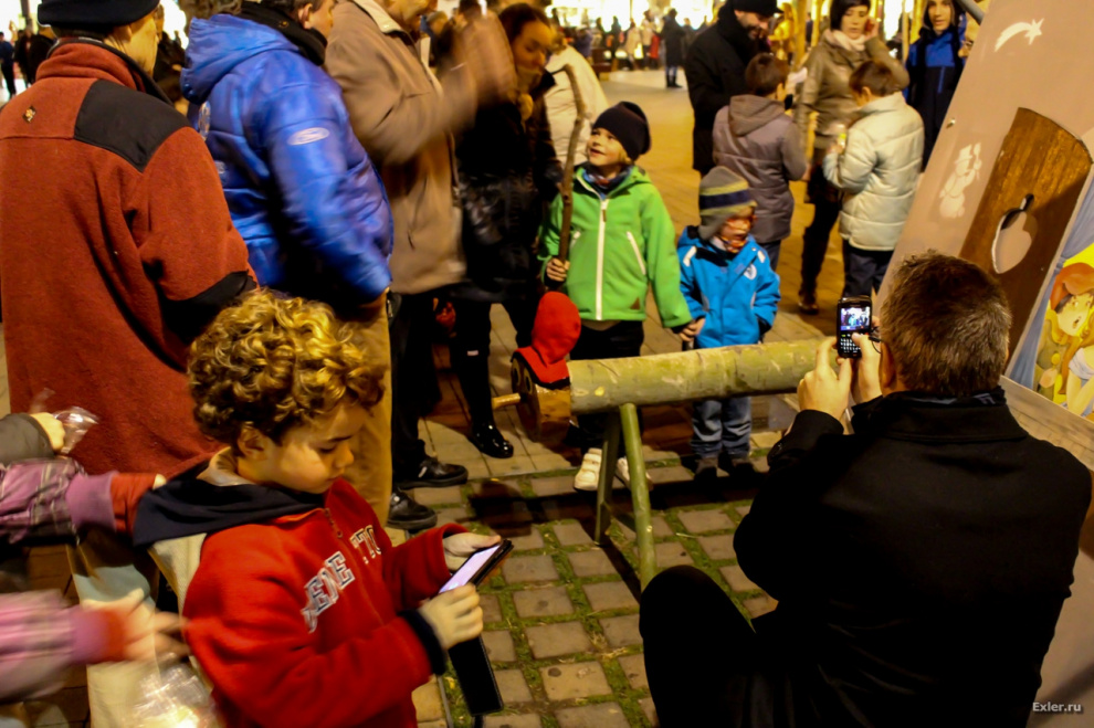Вчера вечерком прогулялся по нашему городку - там на главной площади у церкви проходило традиционное рождественское каталанское мероприятие: детишки зверски избивали палкой старенького дяденьку, а им за это дарили конфеты.
