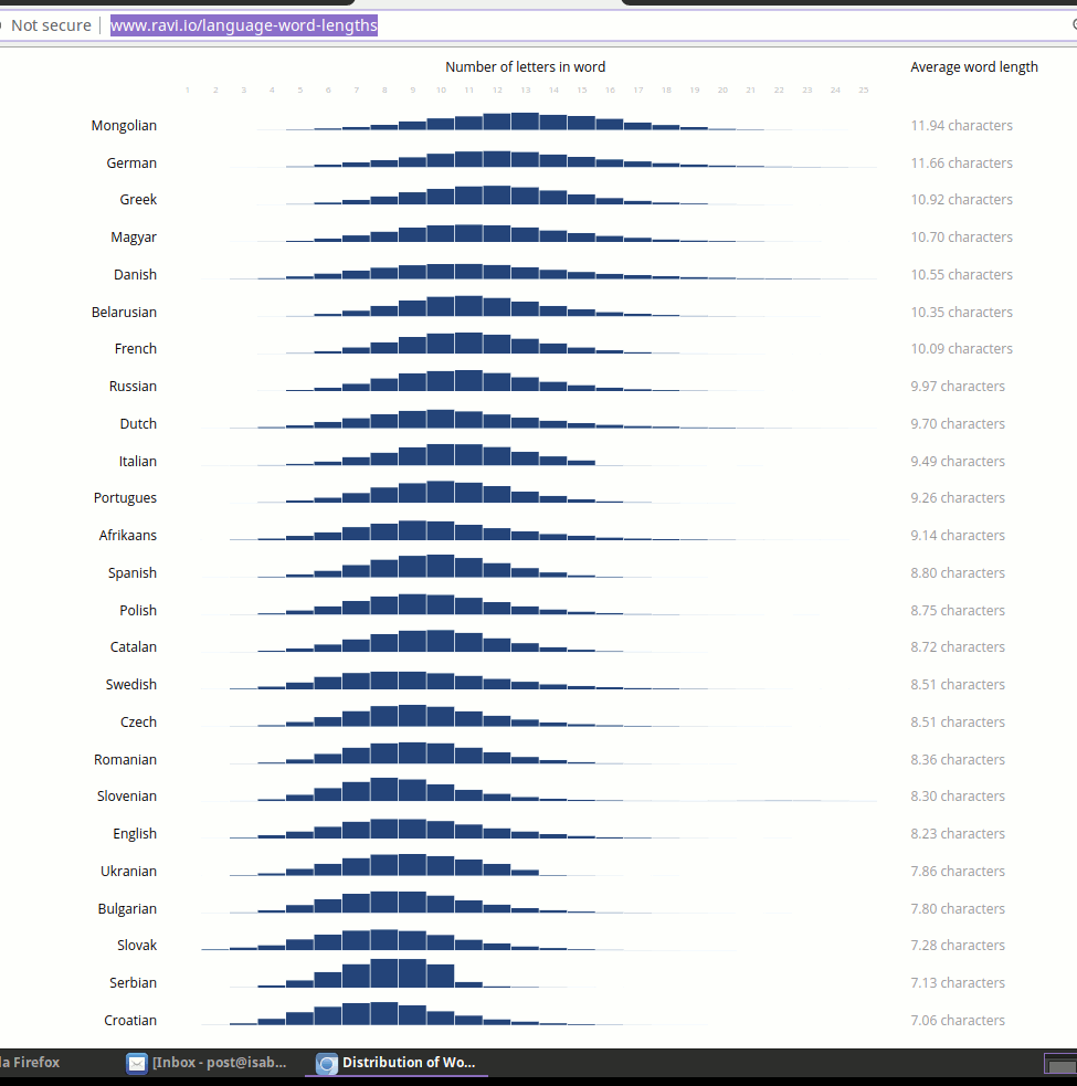 Гистограмма длины слов от какого-то чувары по имени Рави (индус, наверное)