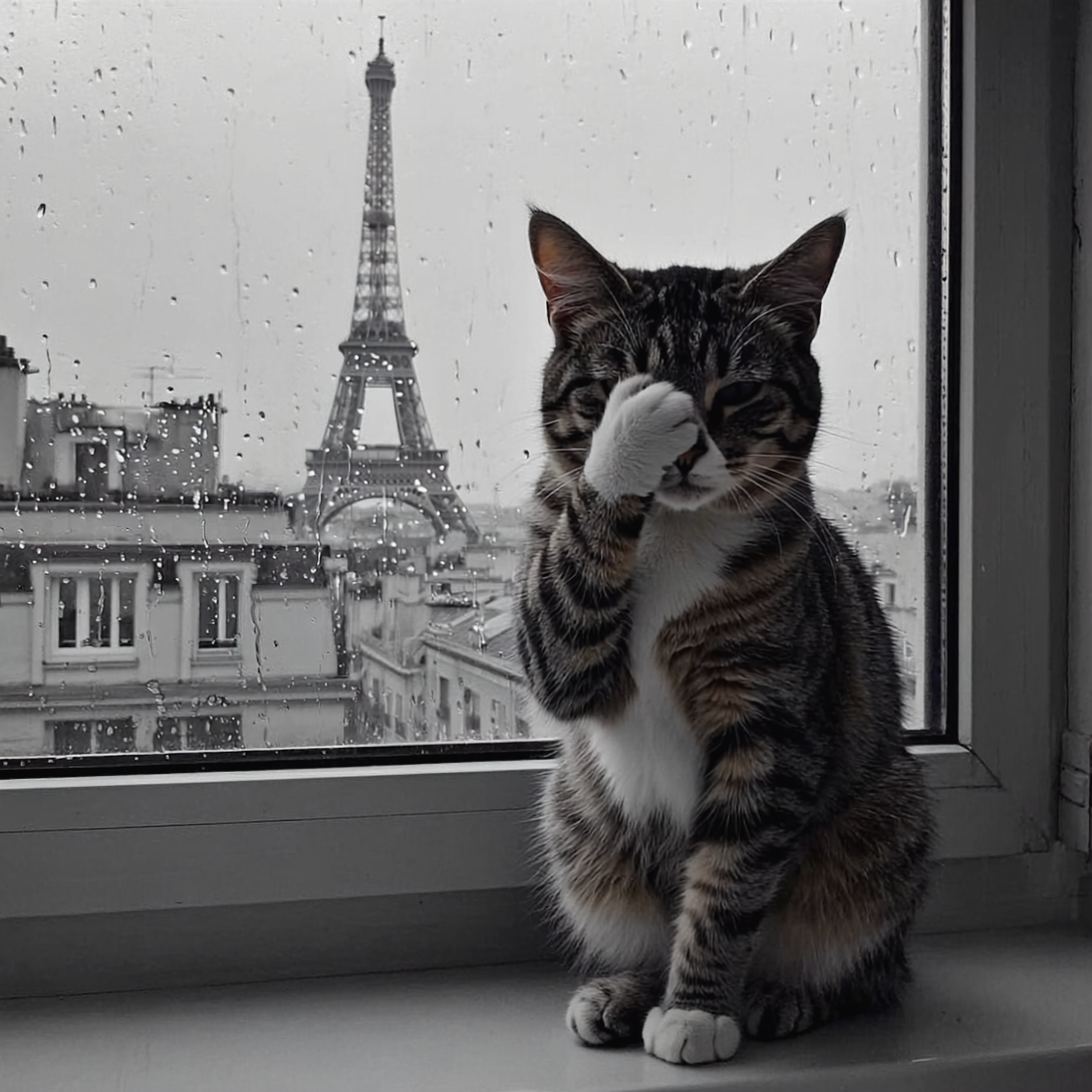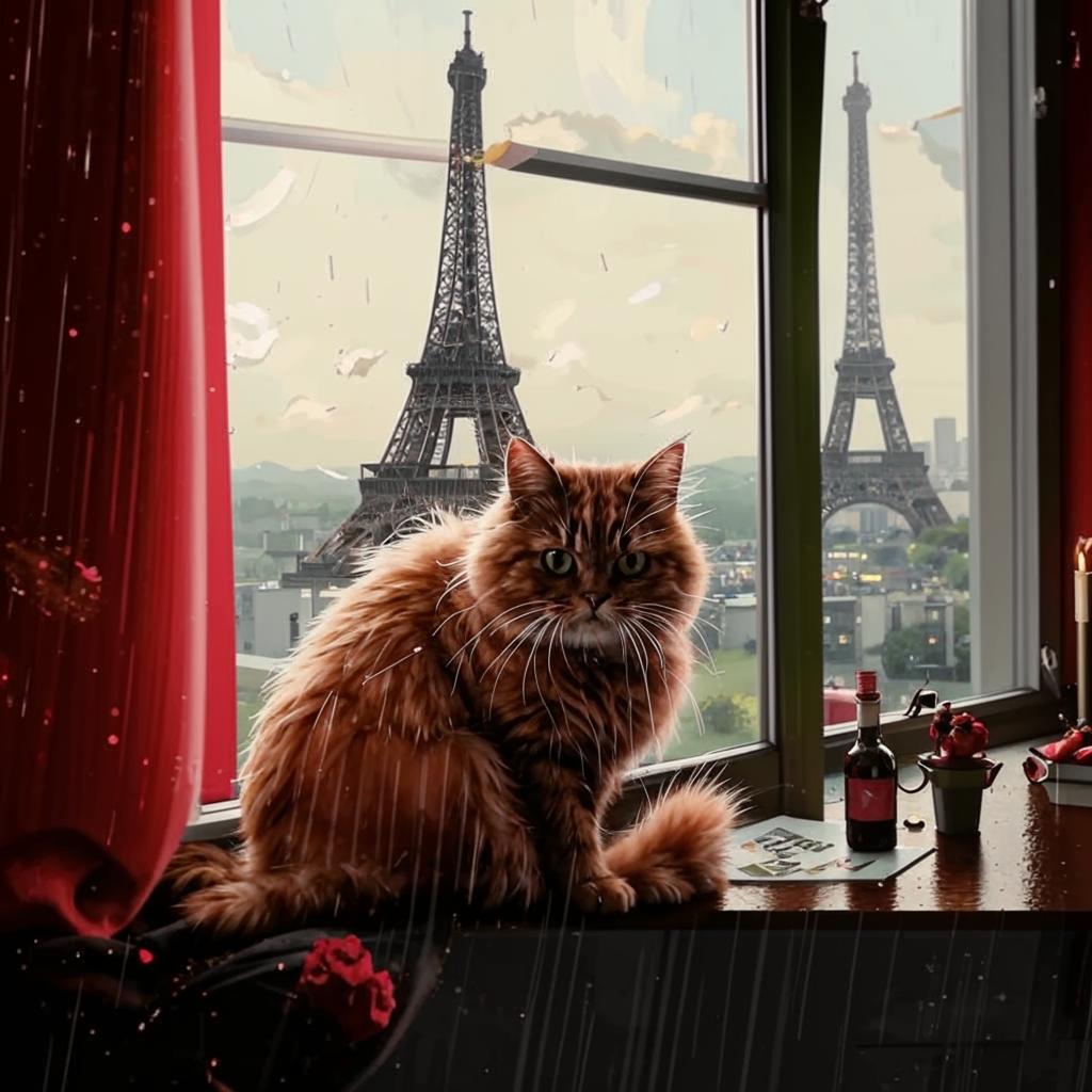 Выражение кота - откуда здесь вторая Эйфелевская башня???