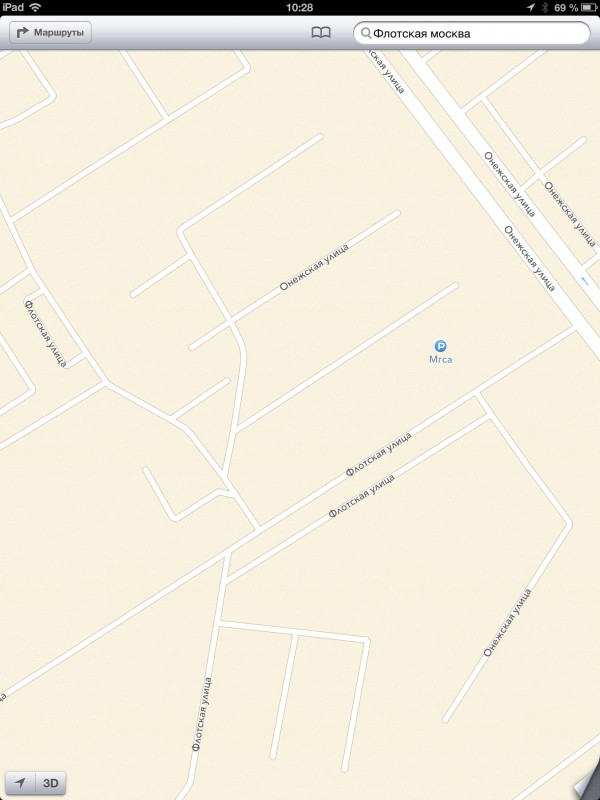 Я не знаю, какой прекрасный человек делал хваленые карты Apple для iOS 6, но, с сожалением, должен констатировать, что он - законченный дебил. Вот, например, найдите на карте Москвы улицу Флотская. И Онежскую тоже найдите. Не стесняйтесь!
