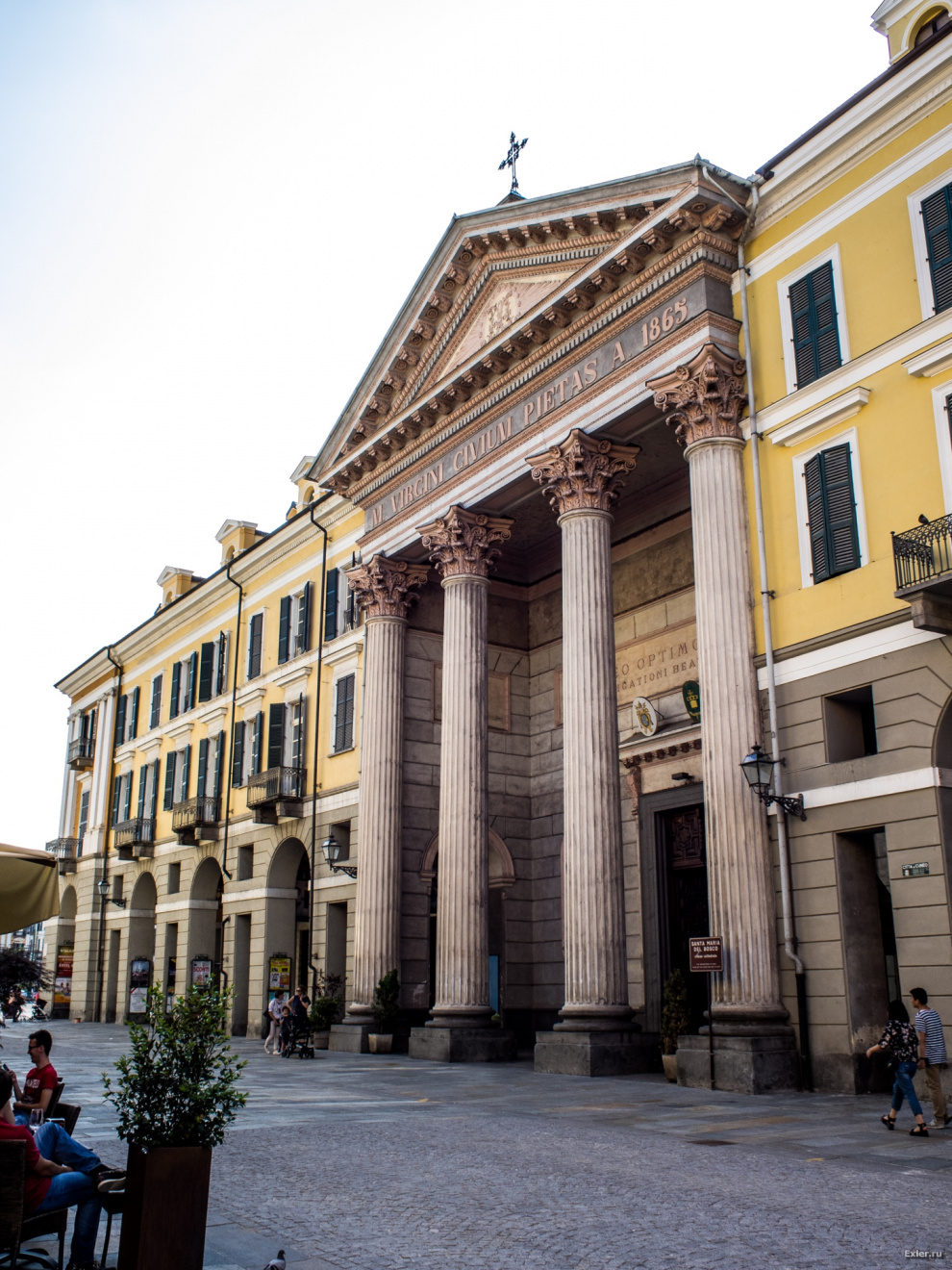 Алекс, у тебя на фото не церквушка, а здоровенный средневековый кафедральный собор - Санта-Мария дель Боско. Это уже к его отреставрированному и перестроенному в 19 веке фасаду, выполненному в нео-классическом стиле с коринфскими колоннами, пристроили здания вдоль улицы...