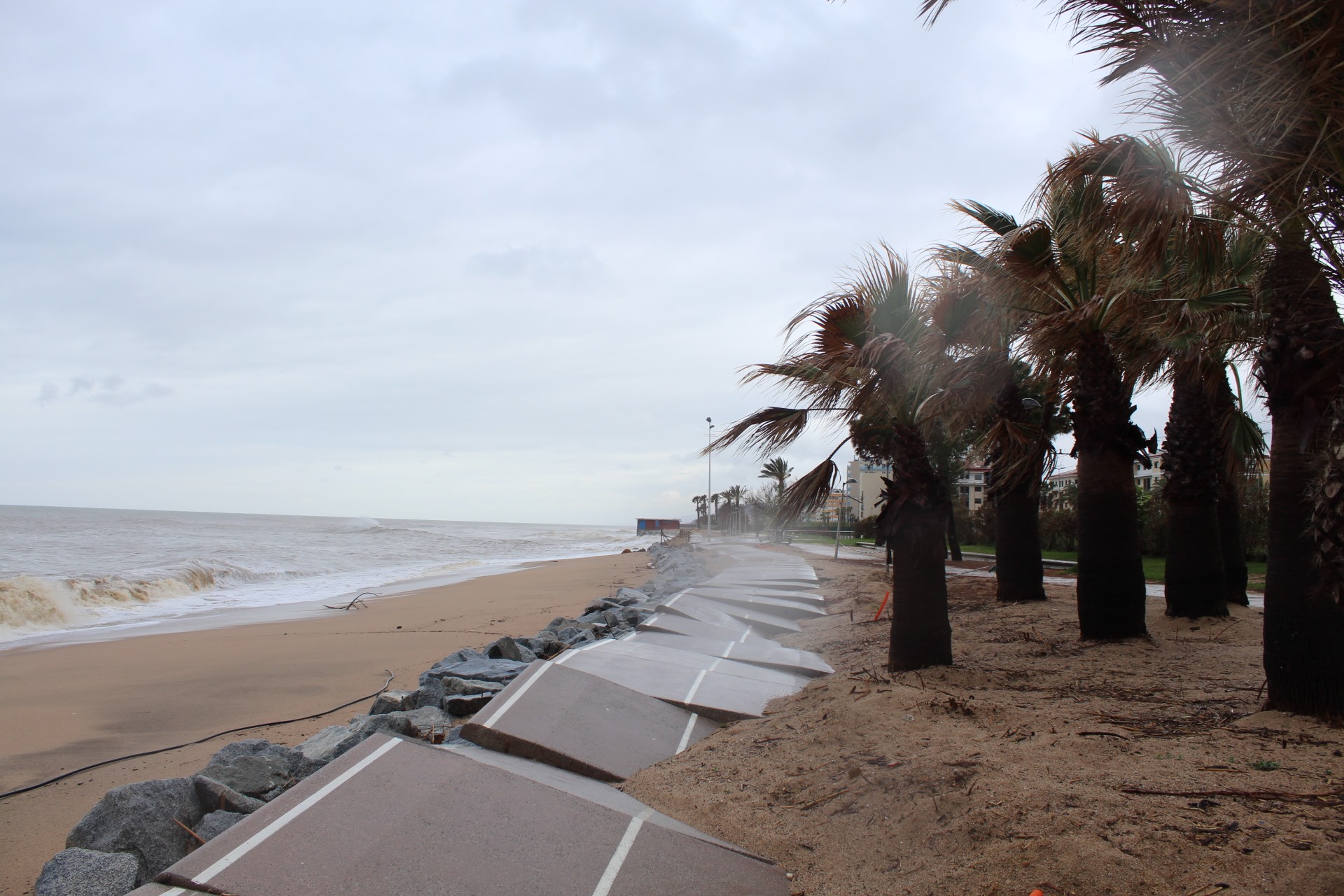 Ну и в еще одном соседнем (с другой стороны нашей Калейи) городке штормом снова к чертям разнесло велосипедную дорожку, которую еще не до конца восстановили после прошлого шторма.