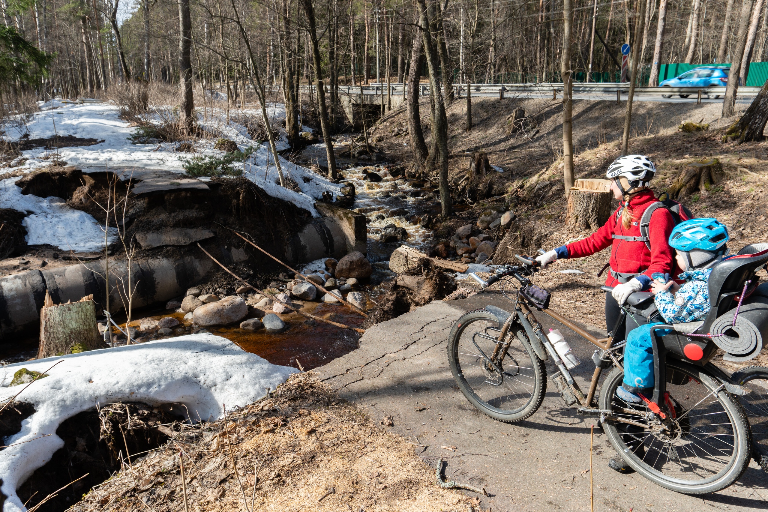 Иногда и без катаклизьмов велосипедные дорожки внезапно заканчиваются. Март сего года.