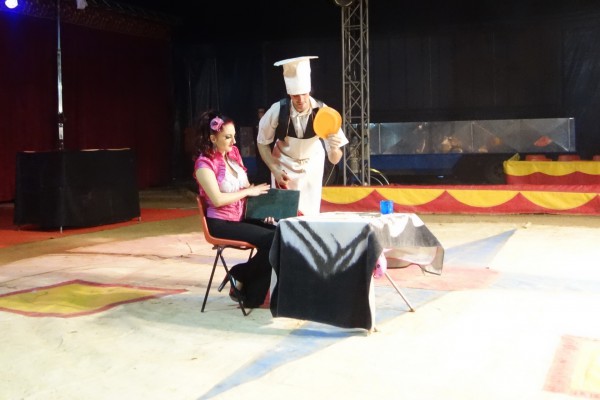 Первым вышел клоун, который оказался ведущим представление. И заодно владельцем цирка.