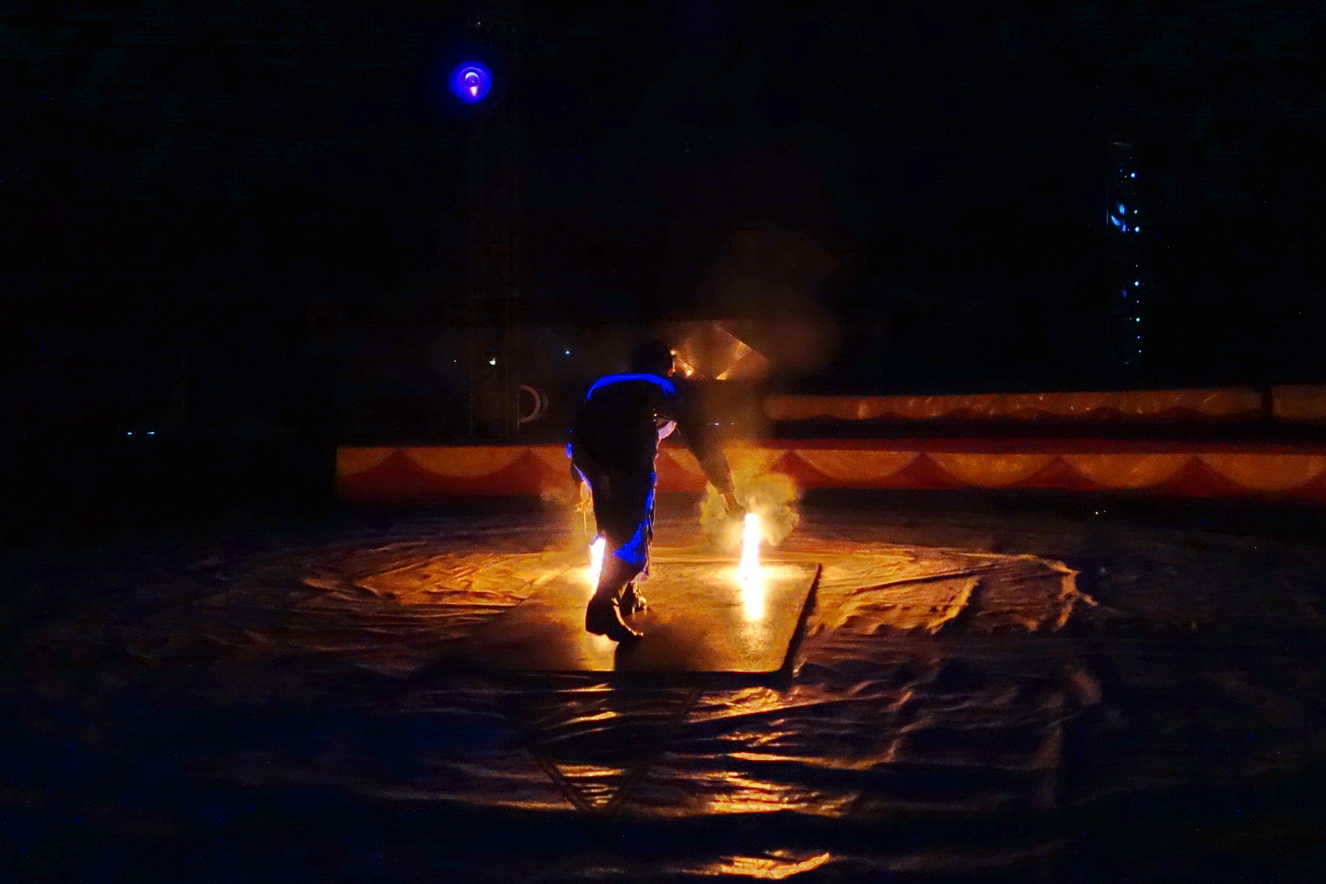 Девушка на канате. Крутилась-вертелась очень эффектно. Ни разу не упала, чем подтвердила свой высокий профессиональный уровень.