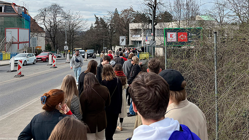 Очередь к российскому консульству в Праге