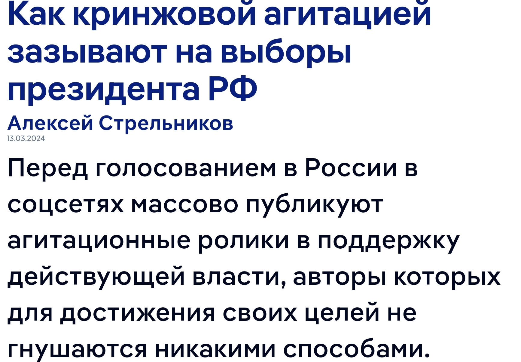 В газетах пишут про массовую явку русской молодежи голосовать на выборах Путина.