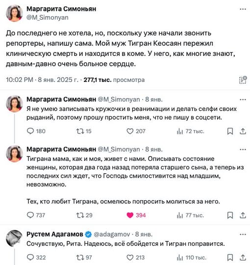 Но круче всех выступил Рустем Адагамов, который высказал Симоньян свое сочувствие, и понадеялся, что Кеосаян поправится, чтобы вернуться к своей пропагандонной деятельности.