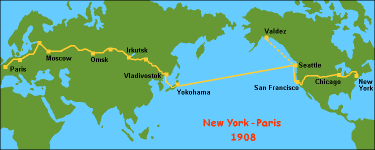 В 1908 году благодаря усилиям двух газет: французской «Матэн» и американской «Нью-Йорк Таймс» состоялся трансконтинентальный марафонский автопробег через Берингов пролив.