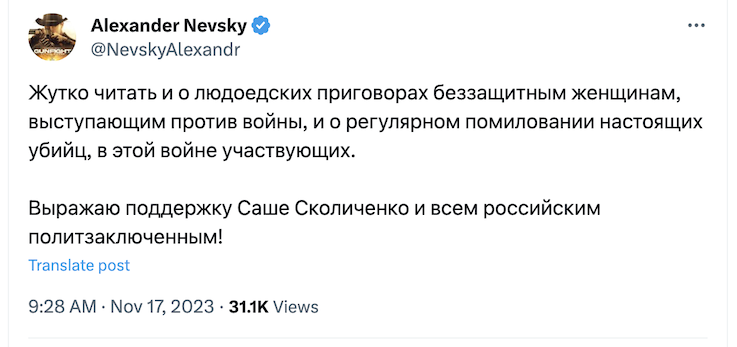 Русские либералы спасают Сашу Сколиченко.