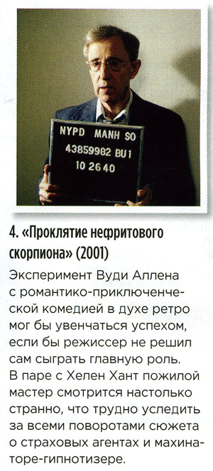 Человек явно не видел больше ни одного фильма Аллена, не понимает суть его творчества и ни черта не понимает в фильме "Проклятие нефритового скорпиона", который является, на мой взгляд, практически лучшим из того, что он вообще снял. Во всяком случае, поток совершенно изумительных и остроумнейших шуток в этом фильме просто достигает апогея.