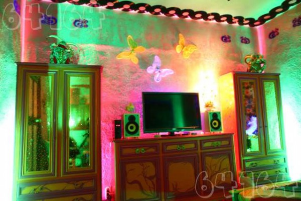 фотки полного эффекта не передают (снимал, наверное, агент-профи. смягчил.), но там реально разноцветно. Да и зеркальная плитка на потолке в прихожей доставляет.