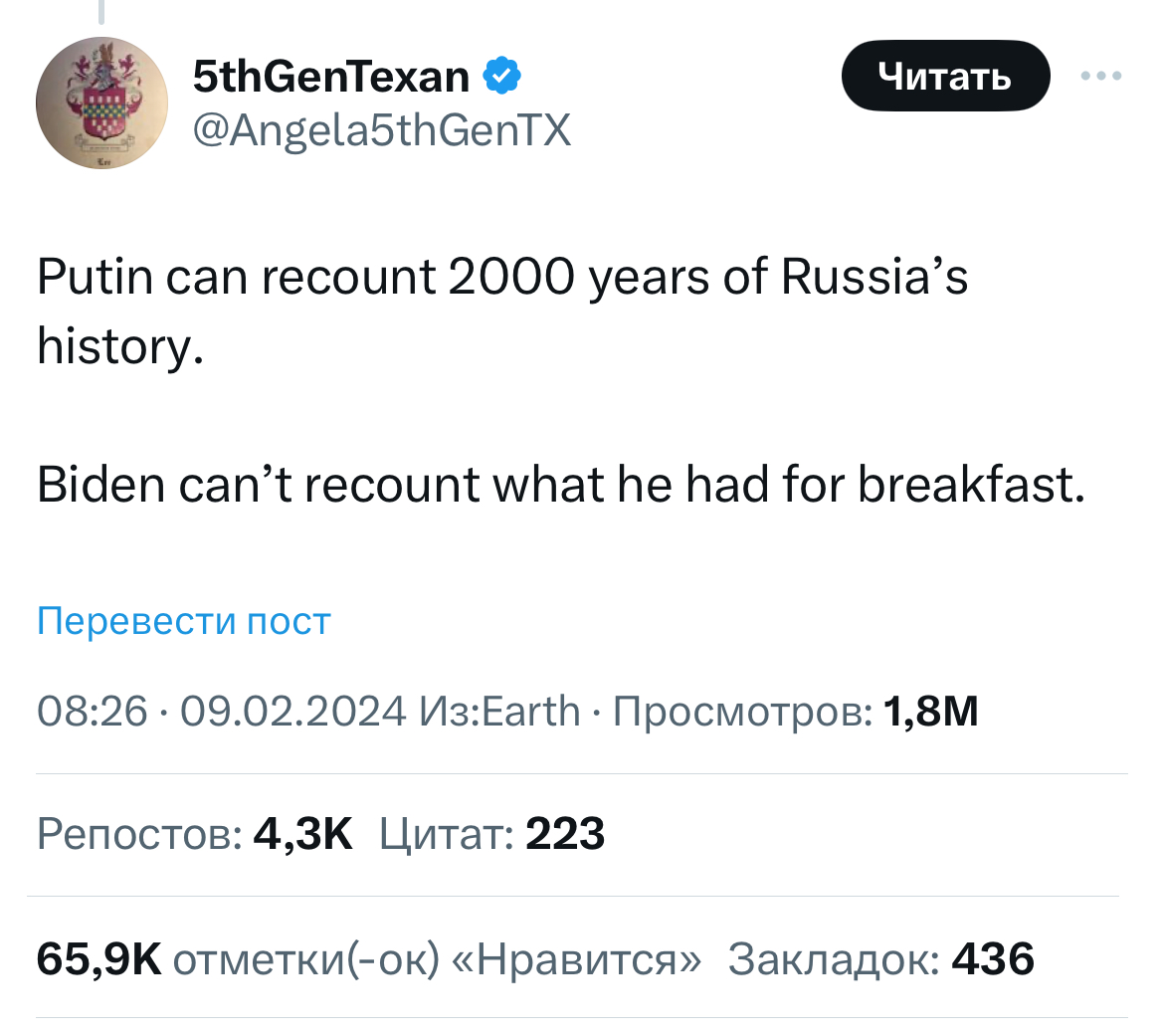 На Ютубе вчера цифра просмотров сначала резко выросла до нескольких десятков млн. просмотров, а потом резко упала до 6 млн. Такого еще не видел. Комментарии, которые в самом верху восторженные и написаны якобы гражданами из разных стран. Накруткой пахнет