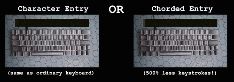 Это даже не спрашивая уж, чем ваши "аккорды" так уж принципиально отличаются от последовательного побуквенного ввода. Что там либо "вслепую" запоминать, либо выискивать каждую букву по отдельности – что тут. Но время для каждого из методов – плюс-минус одинаковое. Так в чём разница-то???