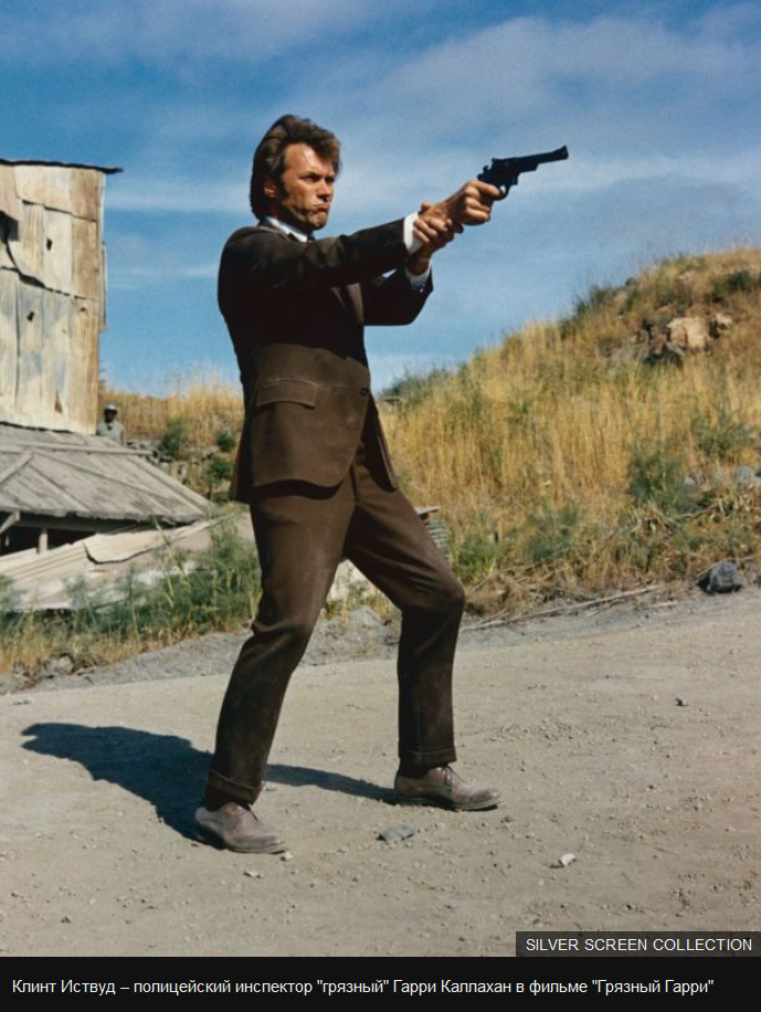 ...трилогия Серджо Леоне и "Грязный Гарри" - это шедевры, после которых Иствуд стал Иствудом, потом было много хороших фильмов, но это - начало! После просмотров грязного Гарри, несколько раз порывался купить 29-й Смит-Вессон...