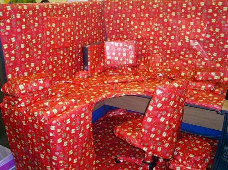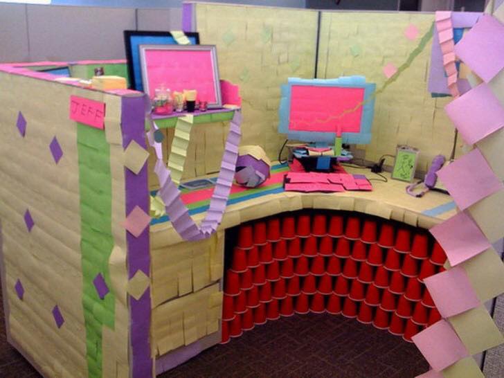 Слушайте, я за всю жизнь менее полугода проработал в помещении, где сидит пара десятков других сотрудников. Кто много в таких условиях работал: действительно существует традиция всячески разукрашивать рабочее место сотрудника к его выходу из отпуска? А то я смотрю - люди проявляют большую фантазию.