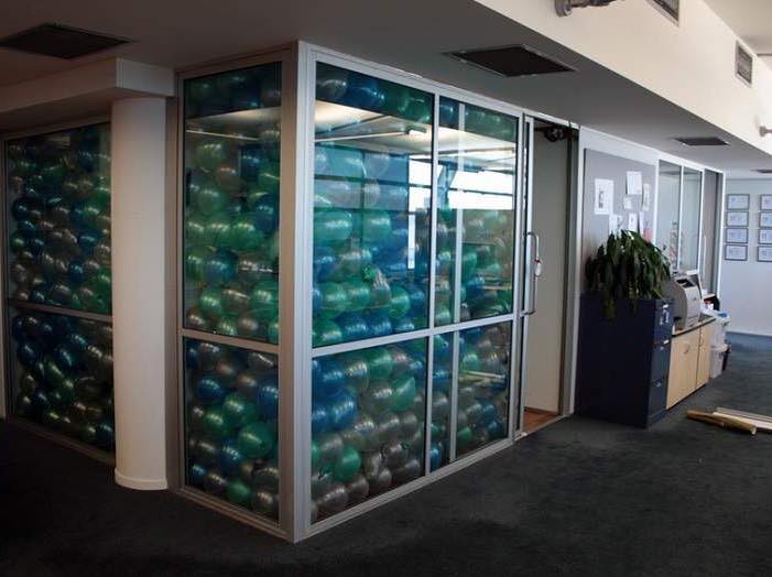 Поскольку шариками забит кабинет босса, можно отомстить - собрать митинг не убирая шариков