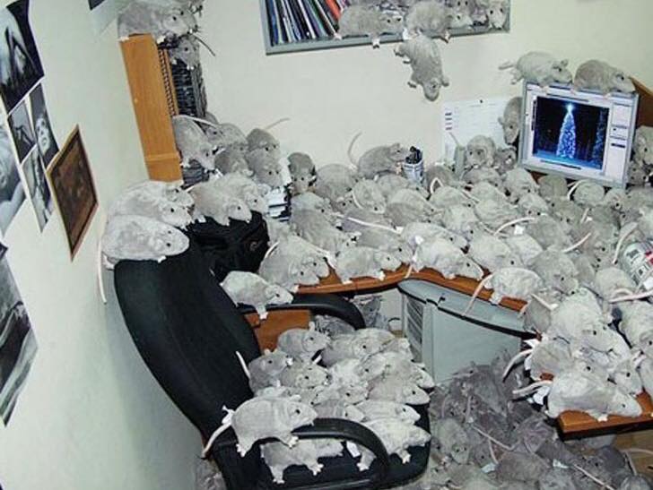 Интересно сколько стоит купить столько крыс? Всем офисом скидывались? А потом их куда? Или как переходящее знамя?