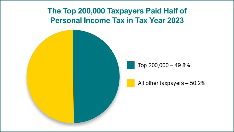 -- In 2022, the bottom half of taxpayers earned 11.5 percent of total AGI and paid 3 percent of all federal individual income taxes. The top 1 percent earned 22.4 percent of total AGI and paid 40.4 percent of all federal income taxes.