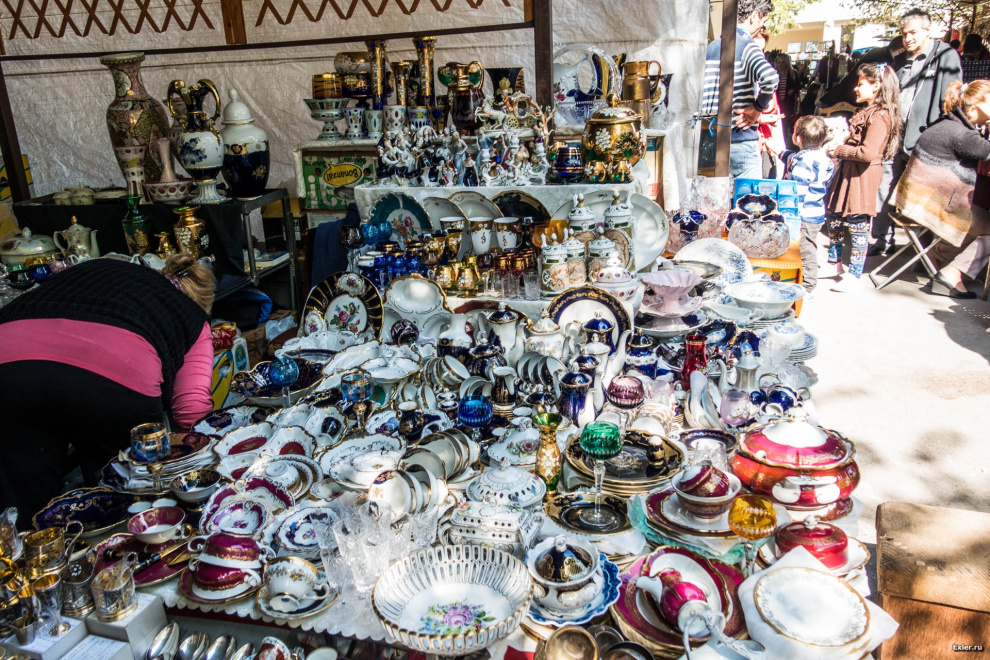 На ярмарке был целый здоровенный ангар со всякой колоритной посудой в стиле наших бабушек-дедушек. Некоторые сервизы были очень красивы, хотя я бы себе такой не взял: я люблю модерновый стиль во всем, а не ретро.