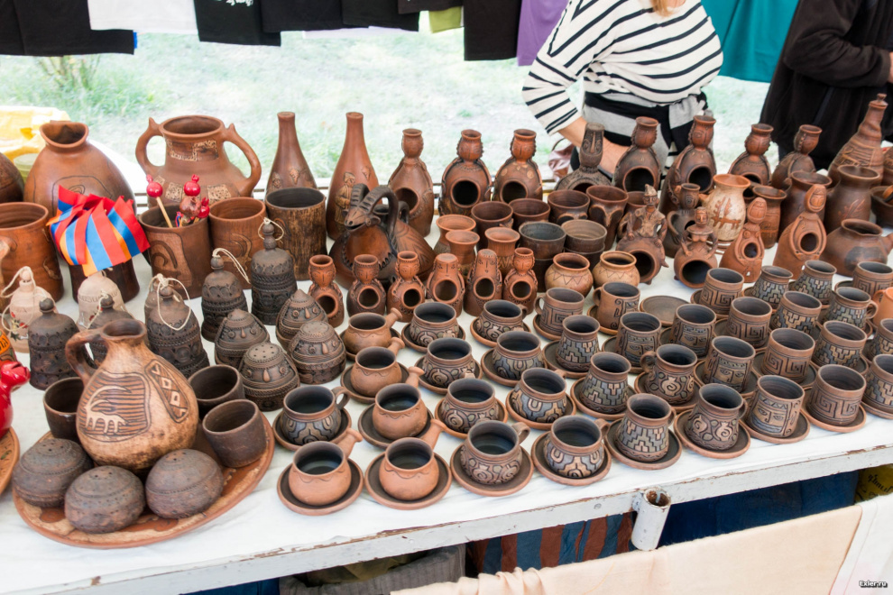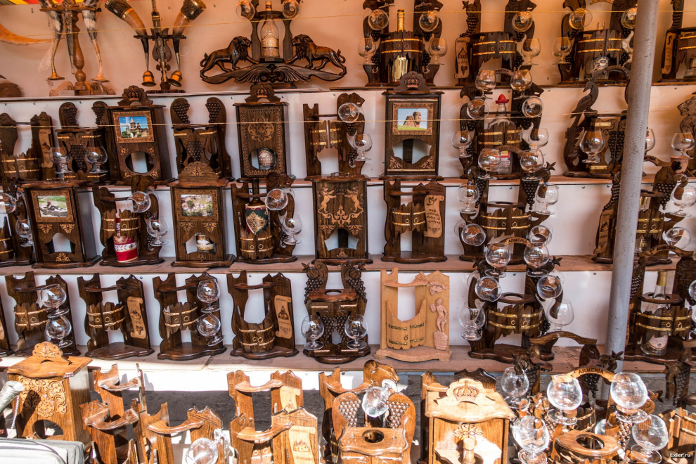 Традиционные армянские подставочки для коньячных бокалов. Во Франции уже давно коньяк пьют из совершенно других бокалов, но что армянам эта Франция, правильно?!! Свои традиции - это свои традиции, наливай, ара! Кстати, знаменитым армянским коньяком на ярмарке также торговали, но только в одной палатке, что странно.