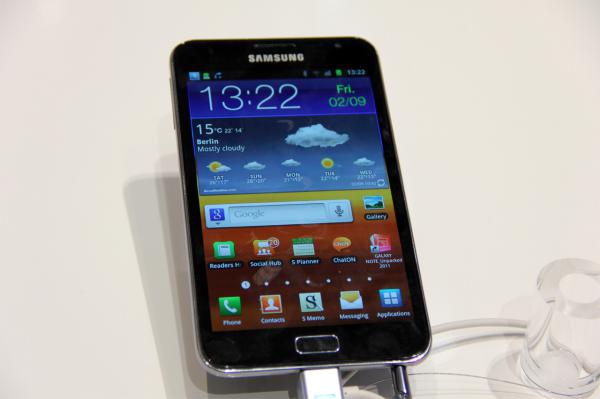 Вот эта штука мне очень и очень понравилась (по крайней мере, пока чисто внешне). Коммуникатор Samsung Galaxy Note с чумовым SUPER AMOLED дисплеем 5,3" 1280х800. Размеры - 146.85 x 82.95 x 9.65 мм, при этом достаточно легкий - 178 граммов.