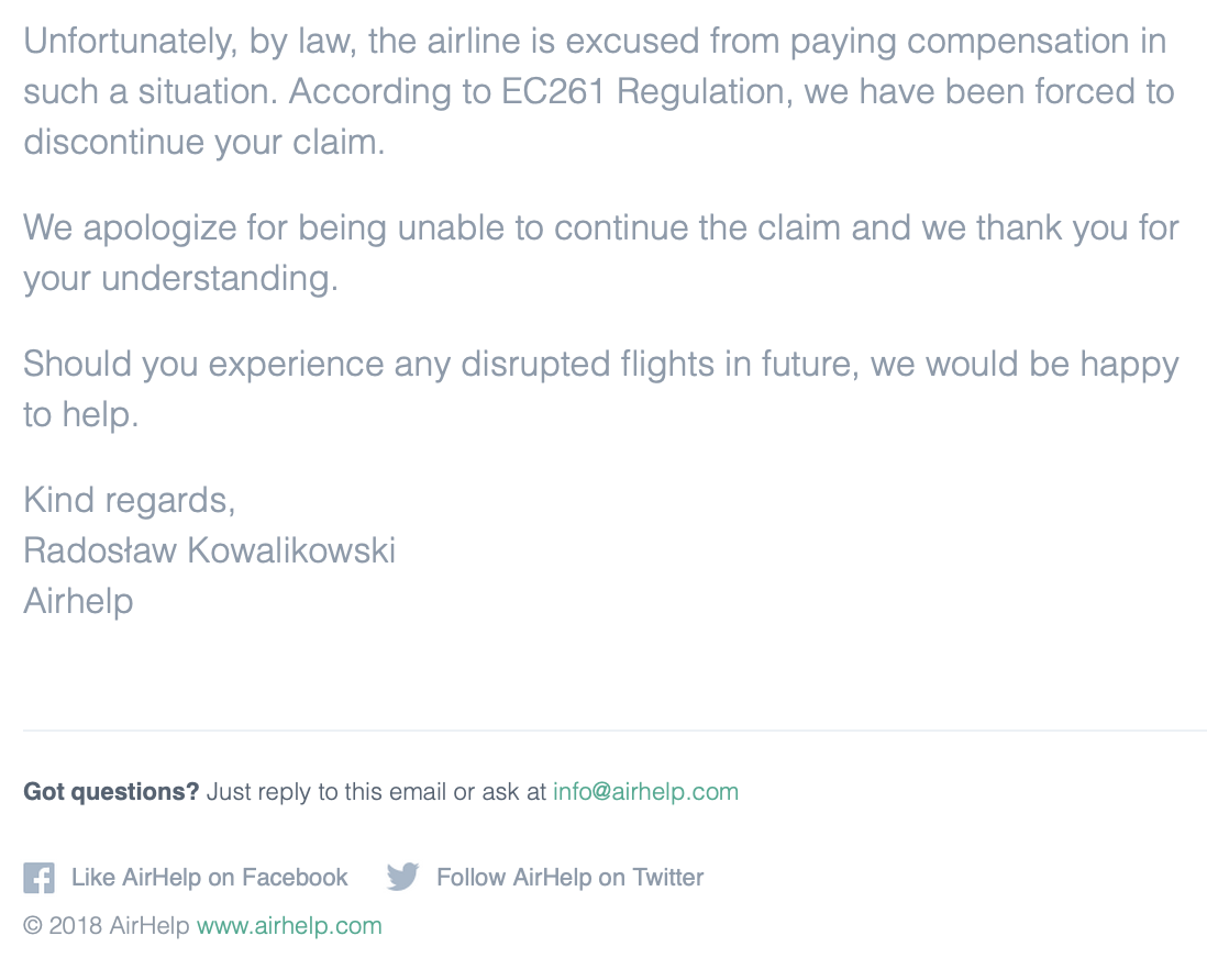 У меня тоже отказ от дела, но за мировую они согласны выдать €125, ровно четверть от указанной мной стоимости.
