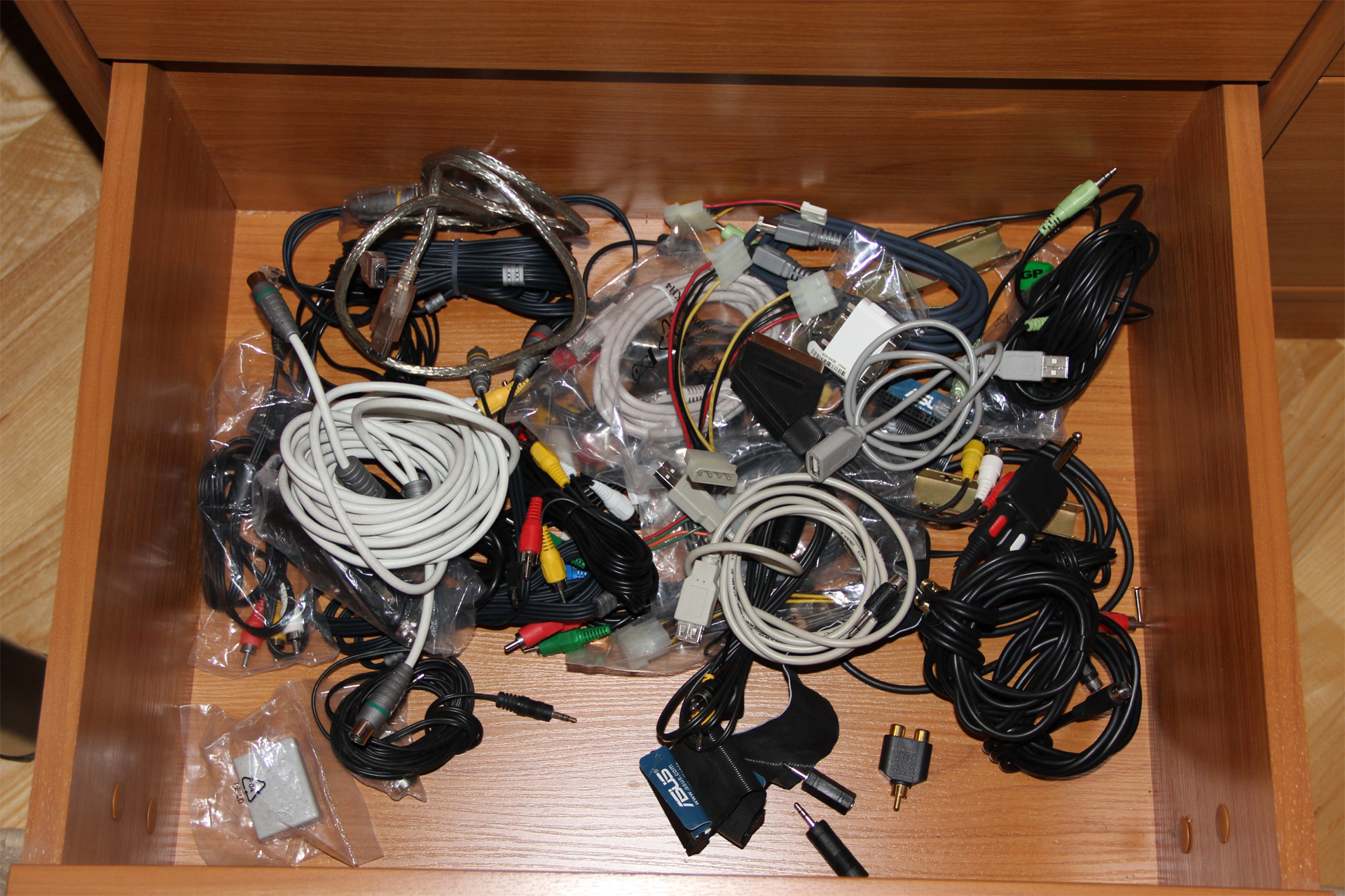 Ну я вот ни разу не гик и не техноманьячка, и вообще,я врожденная блондинка,но "коллекция"проводков,кабелей, дисков разного типа не умещается в ящик стола!ОТКУДА!!