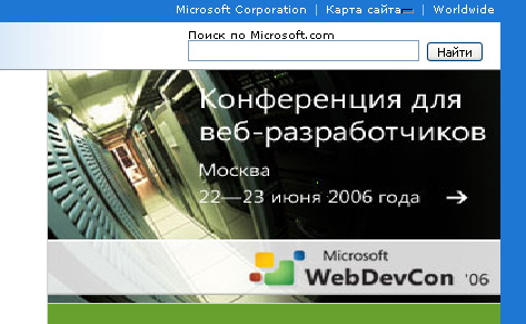 А, по-моему, веб-разработчик - это человек, работа которого состоит в создании максимально удобного сайта, отображение которого будет максимально корректным. И уж раклама конференции таких людей должна выглядеть должным образом, т.к. основное ее предназначение - не улучшение настроения веб-разработчиков, а их привлечение к данному мероприятию. В общем, выглядит это, будто правая рука дает оплиуху левой щеке.