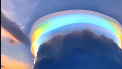 Редчайшее радужное облако ("Pileus cloud"). Снято в Китае.
