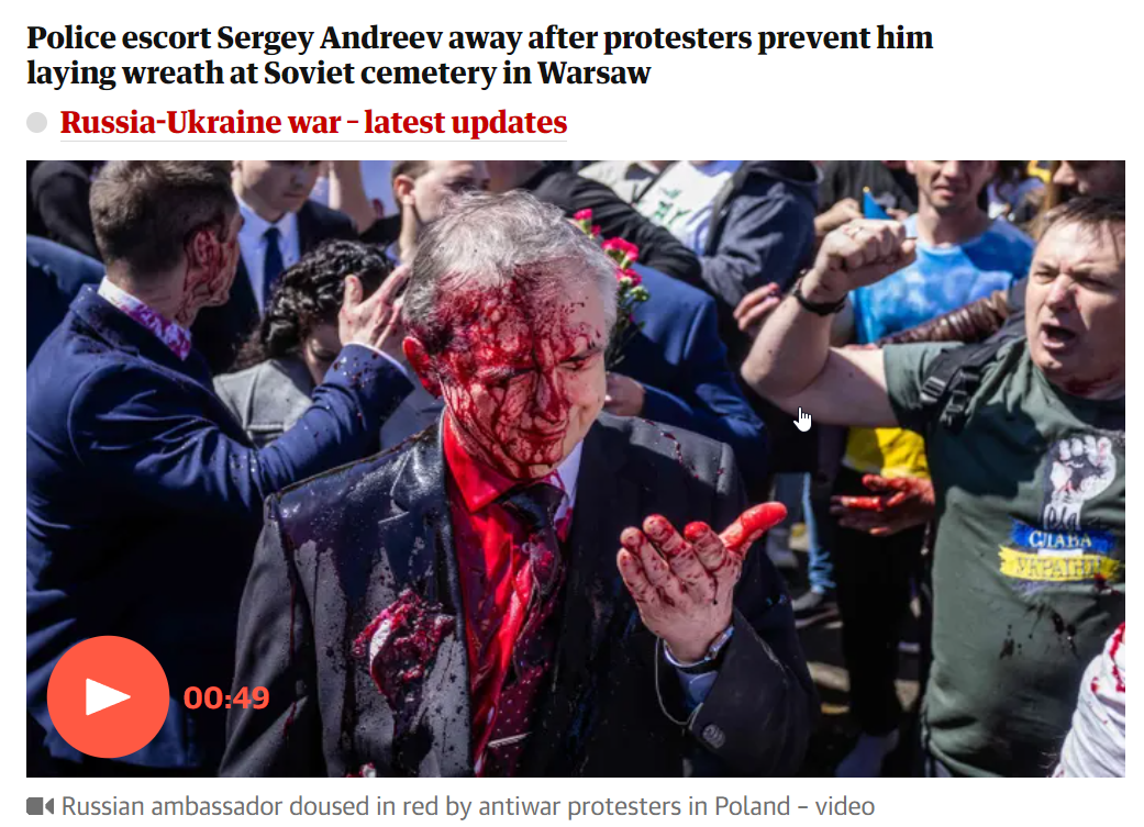 Российский посол в Варшаве Сергей Андреев сообщил, что при нападении его облили не краской, а сиропом.