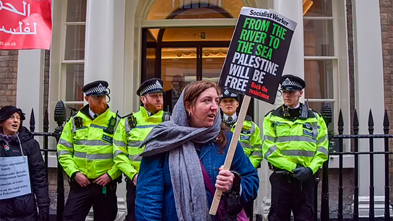 Пропалестинский митинг перед зданием Королевского общества искусств в Лондоне
