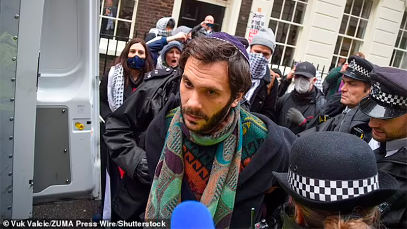 На место прибыли полицейские, которые охраняли митингующих, чтобы пресечь любые посягательства евреев на их право выразить свой протест, и хорошо что полицейские были на месте, потому что на митинге объявился какой-то проклятый еврей, который немедленно был арестован (я не шучу, зайдите прочитать оригинальный текст), потому что "он не был участником протеста".