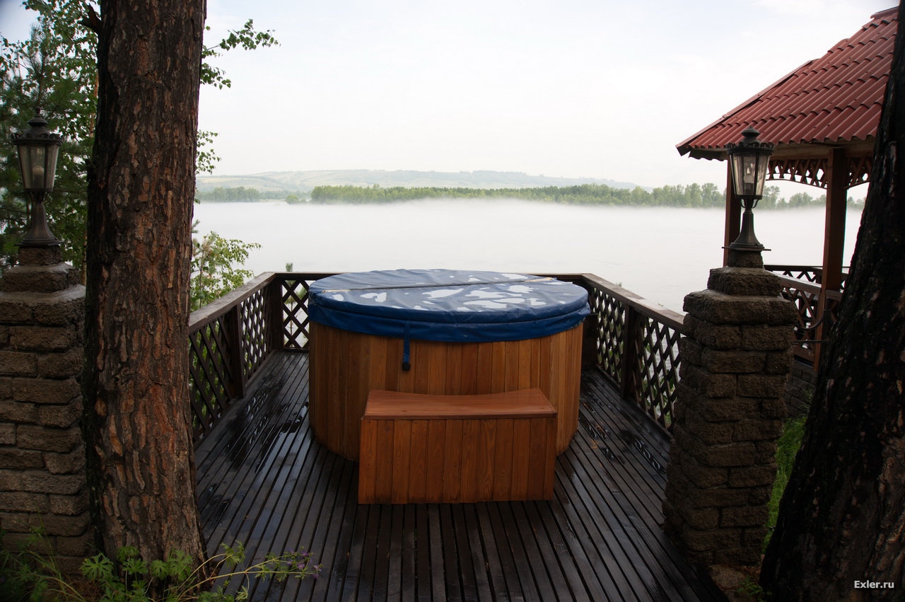 Буквально в двух шагах - бассейн с роскошным видом на Енисей.