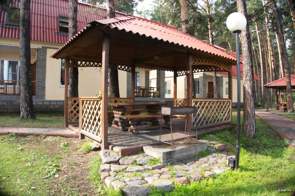 Территория дома отдыха: всякие веранды, домики, газончики и все такое.