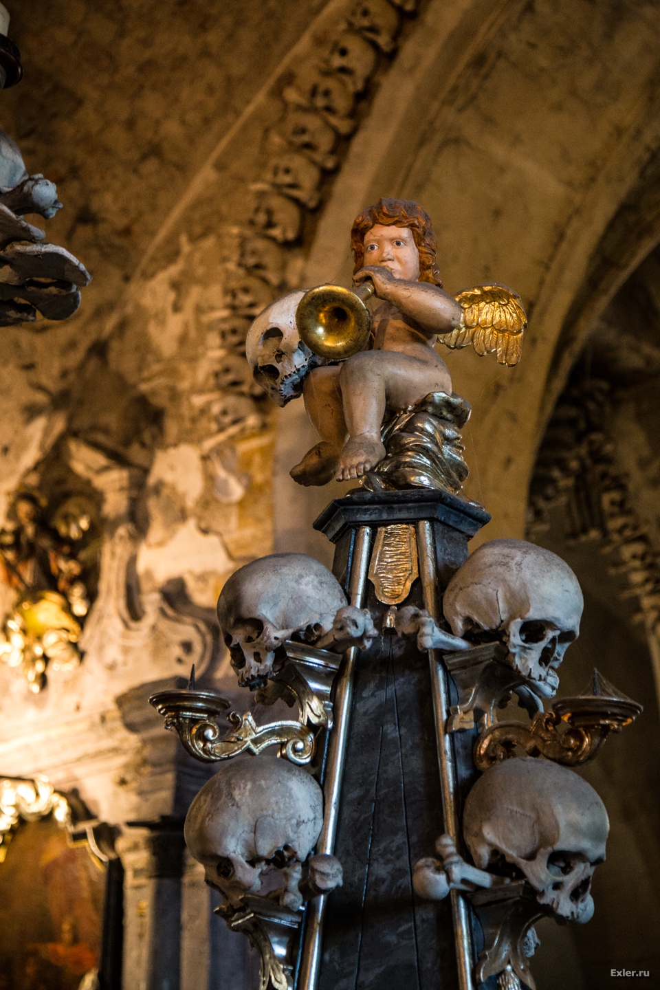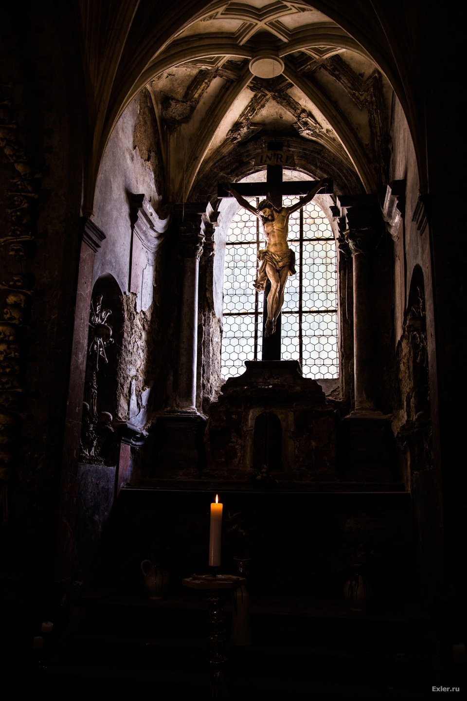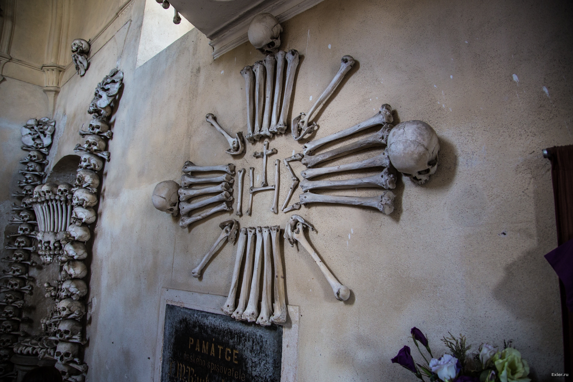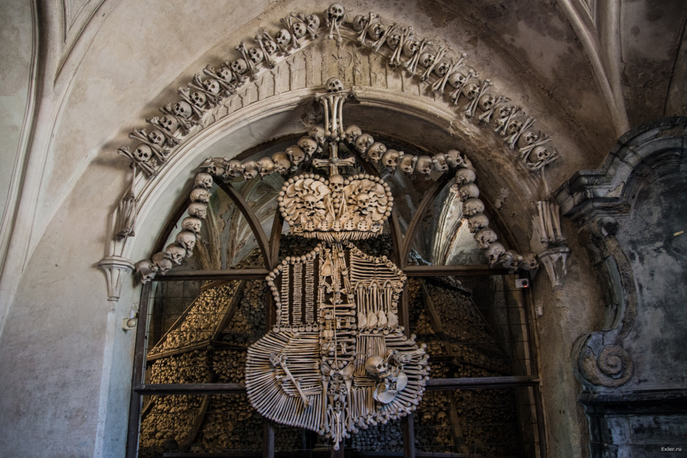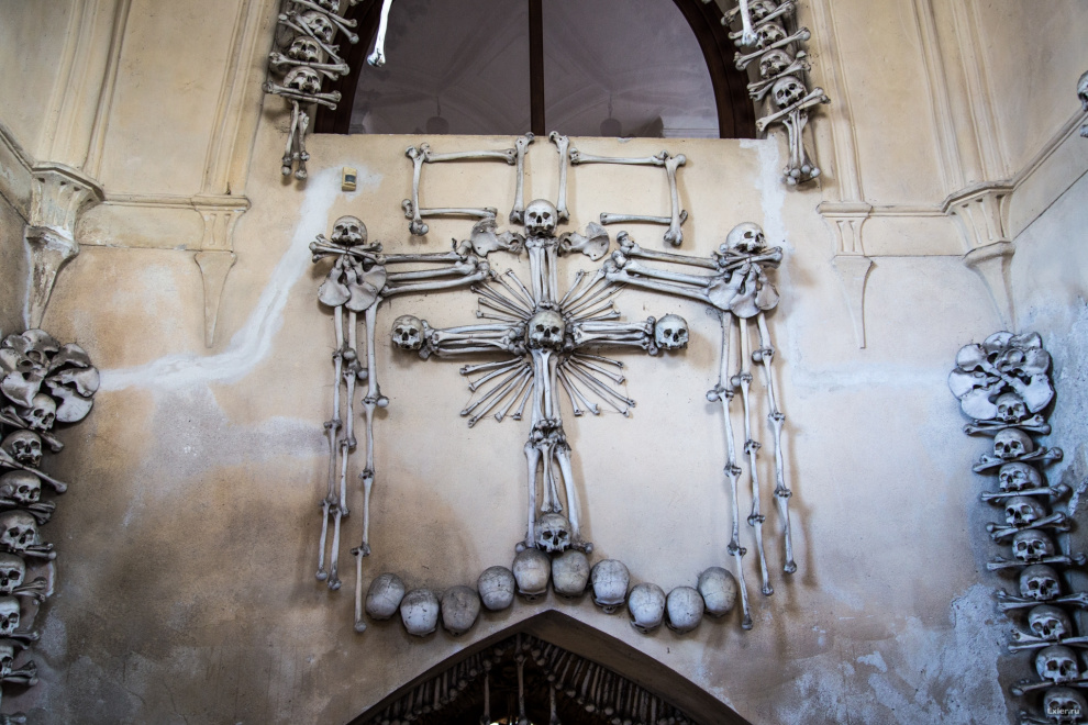 Насчёт христианских канонов решили очень просто. По христианству кости должны быть похоронены под землёй. Ну так они и находятся в подвале, то есть ниже уровня земли. В целом церковь то просто складировала в подвале, художества там наваял уже частный владелец из Шварценбергов. Был там король-атеист когда-то, который кучу собственности у церкви отобрал и продал частным владельцам, включая церкви и часовни. Данная стояла запертая и такой её сделал новый владелец.