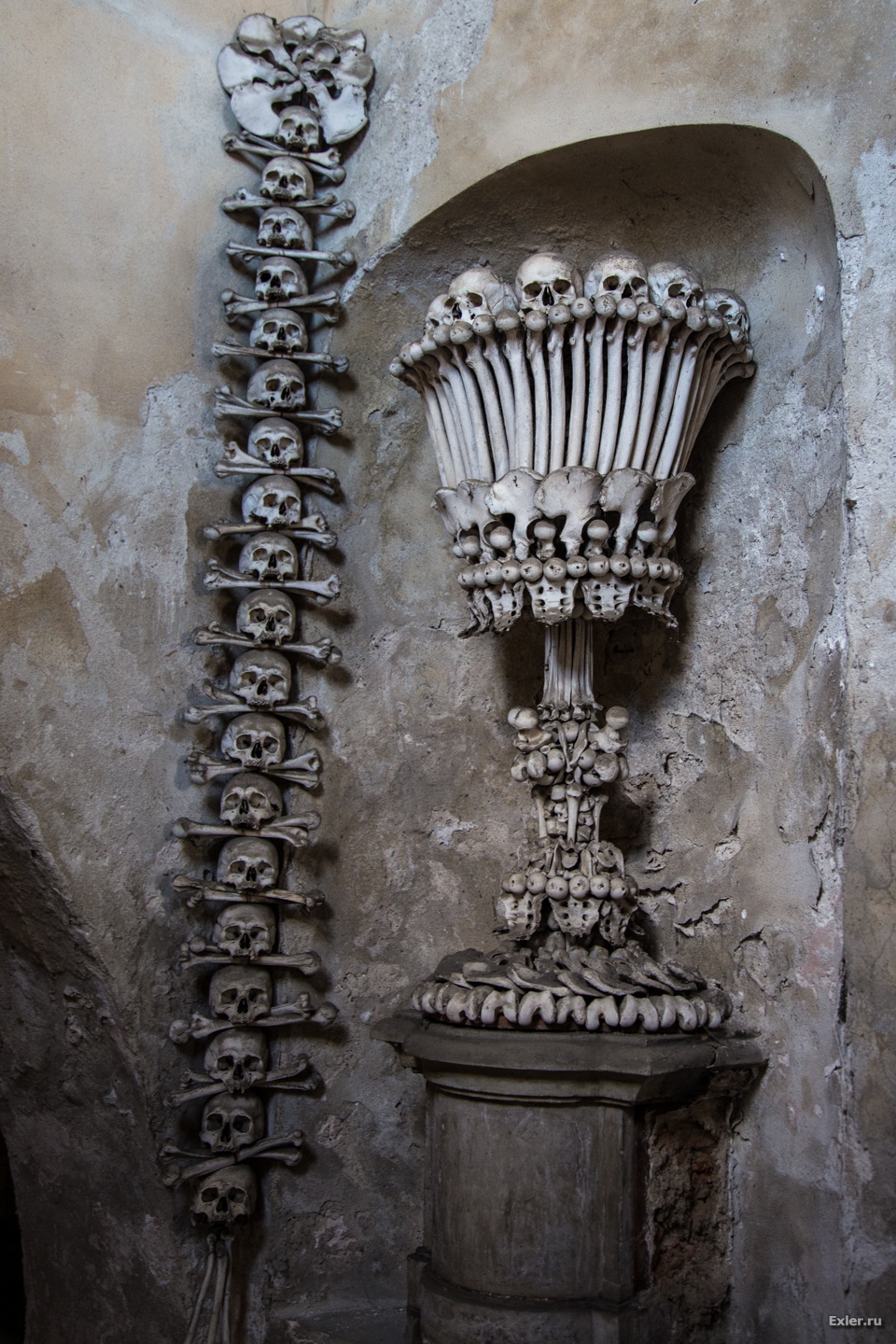 Имхо, отвратительное зрелище. У того, кто это придумал и реализовал, явно было что-то нездоровое с психикой. Ладно бы еще такое в музее....раньше видел фотки подобных сборищ костей в каких-то европейских подземных катакомбах (вроде то Париж был). Но вот интересно, как такое сочетается с христианскими канонами?
