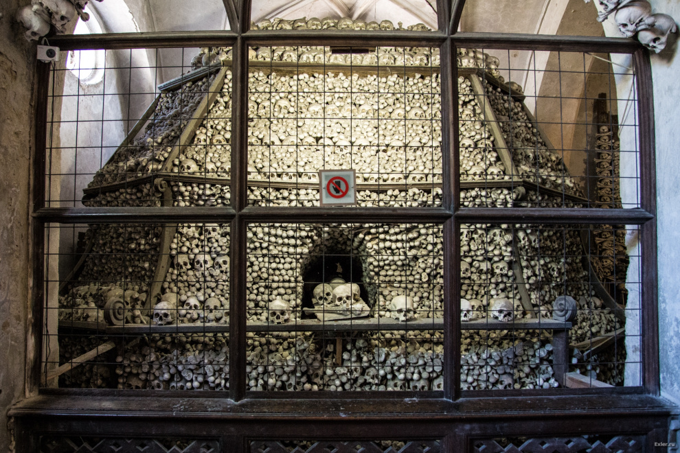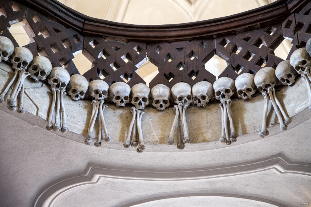 Рассказывают, что складированием костей занимался полуслепой монах, которому не было чуждо чувство прекрасного. Просто так раскладывать кости ему было неинтересно, и он стал складывать из костей и черепов всякие сооружения - во славу Господа, разумеется.