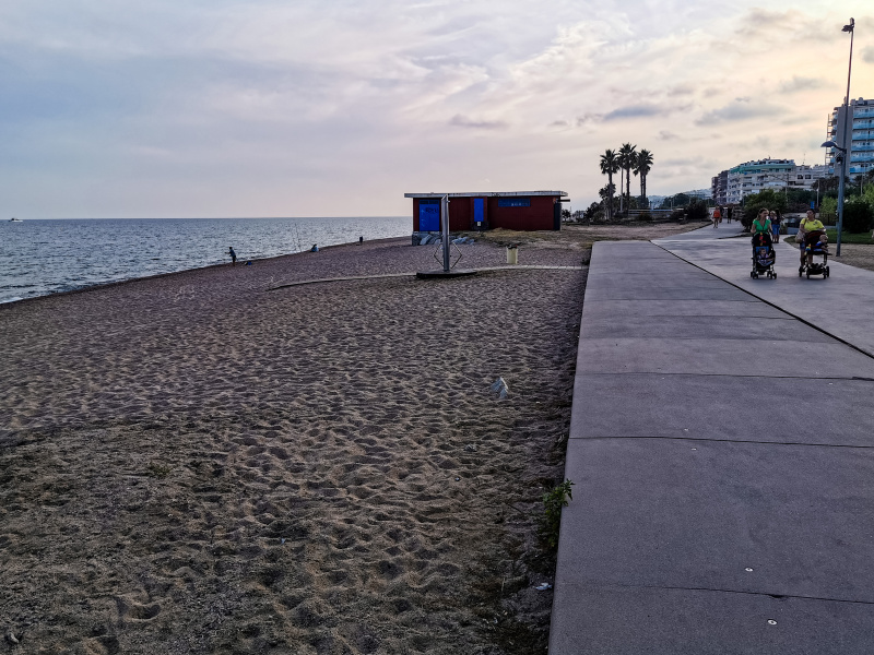 Еду вчера свою ежедневную тридцаточку на велике вдоль пляжа по Пинеде-де-Мар. Там есть новый участок - сделали кусок велодорожки прямо вдоль пляжа, правее идет дорожка для пешеходов.