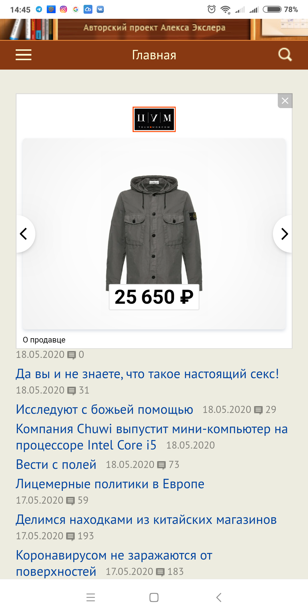 вылезало несколько раз подобное ( Chrome текущий, анроид 10). Но вылезало на одних и тех же объявлениях, в том числе ЦУМ точно был ( похоже он не совсем вписан в размер)