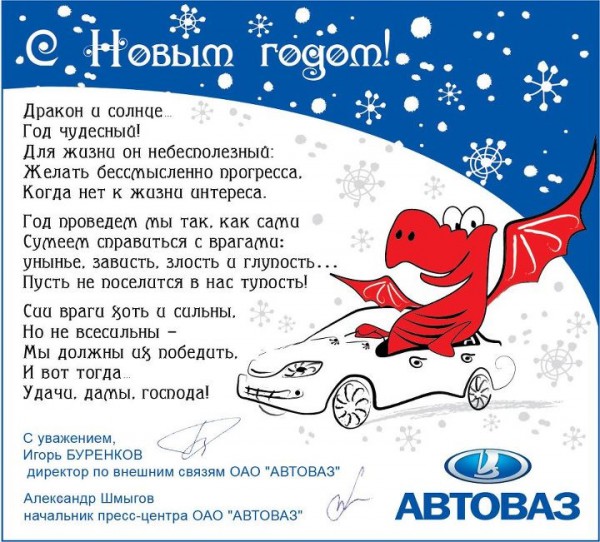 Да уж.. ( Стишата - тот ещё шедевр! Неужели Автоваз настолько обнищал, что пожалел денег заплатить профи? Ощущение, будто директор приказал секретарше наваять "креатива" под угрозой увольнения. Она "рожала" и плакала..