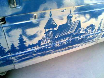 А когда рука набита, то хоть на запотевшем стекле, хоть на грязной машине - пара минут. В той же технике исполнения, что и на борту сабжа.